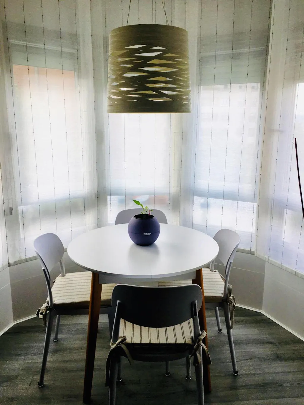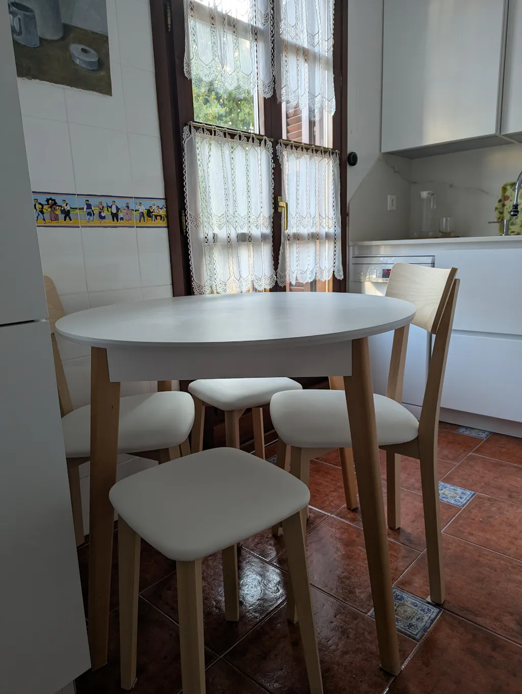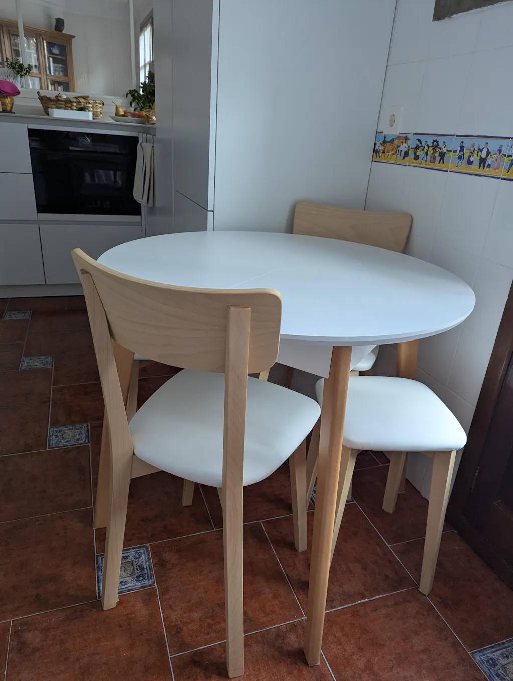 Mesa redonda extensible blanca 90cm diámetro con patas de madera haya