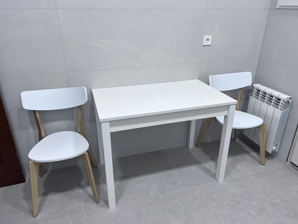 Silla nórdica de madera color roble y blanco para comedor o cocina