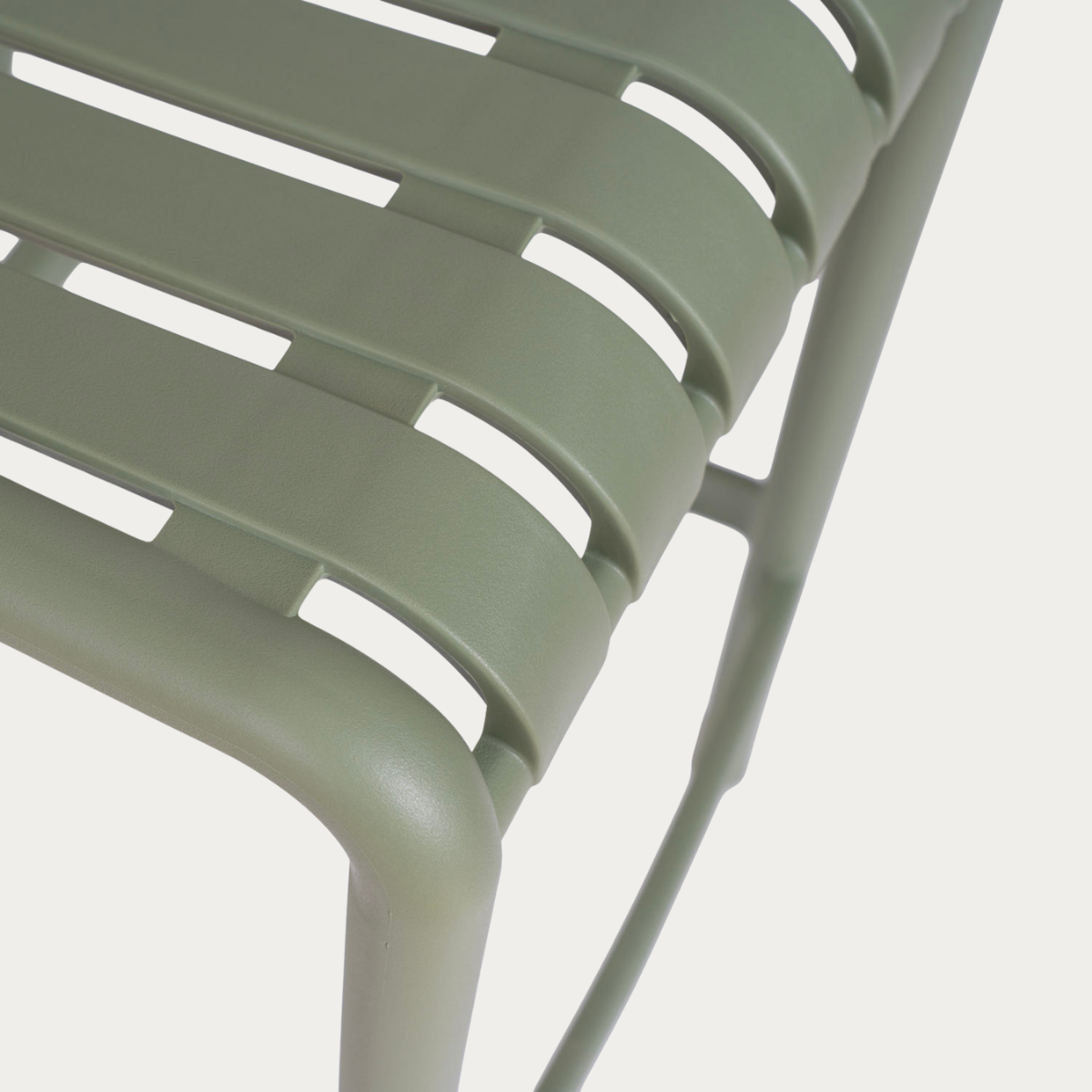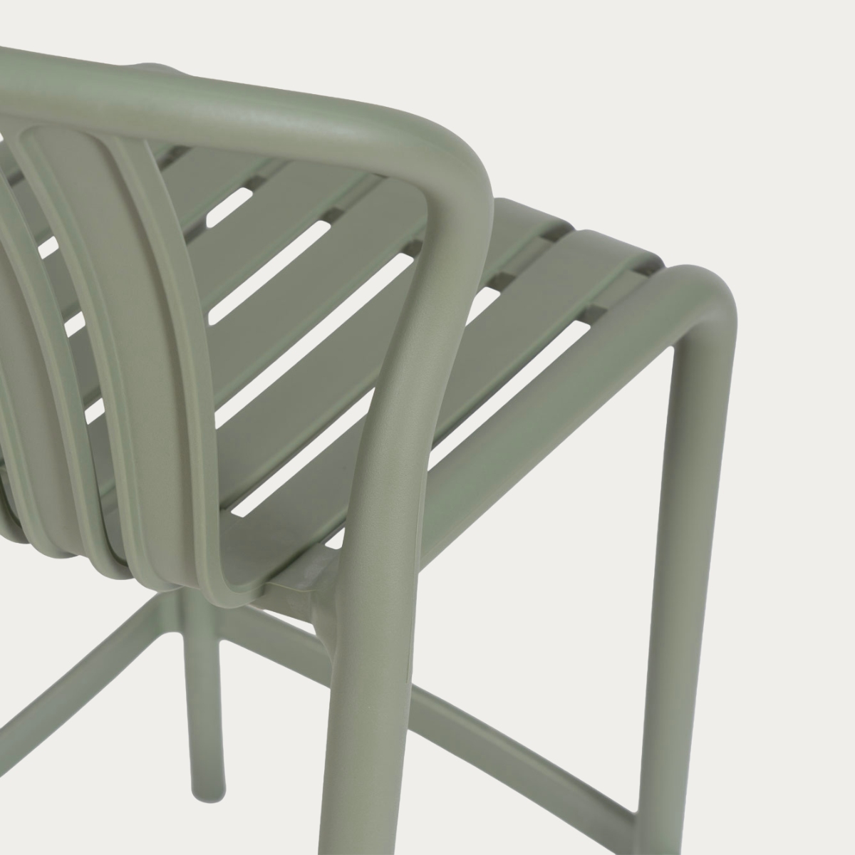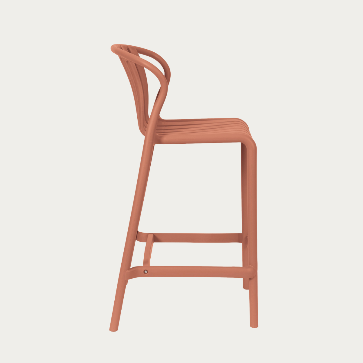 Este taburete alto es ideal para mesas altas o barras de una altura entre 90 y 96cm. El asiento está a una altura de 65,5cm y la altura del respaldo llega a 91,5cm. El ancho total es de 46cm.